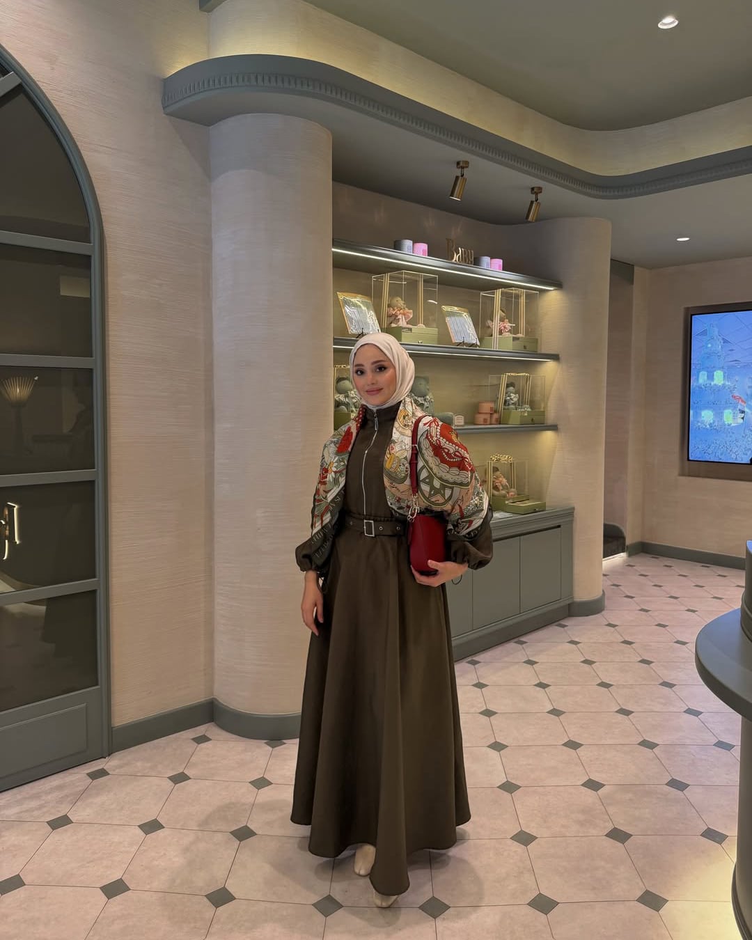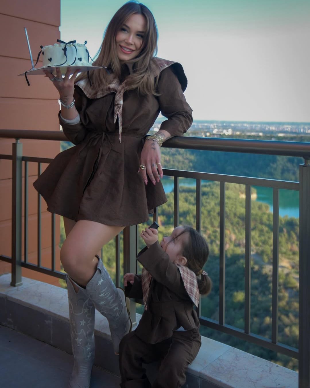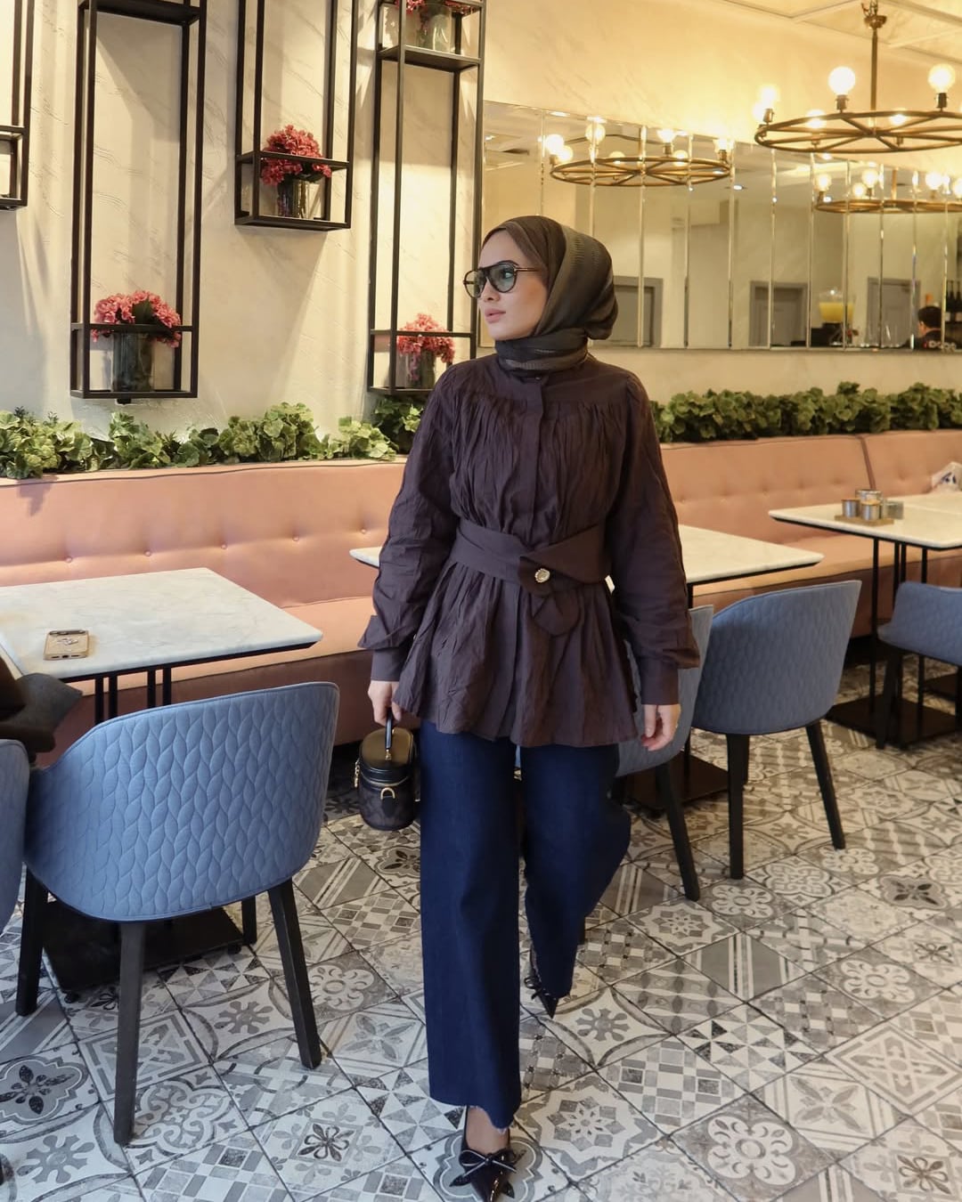 Yaka Ekoseli Bel Pileli Pamuklu Takım - Kahve