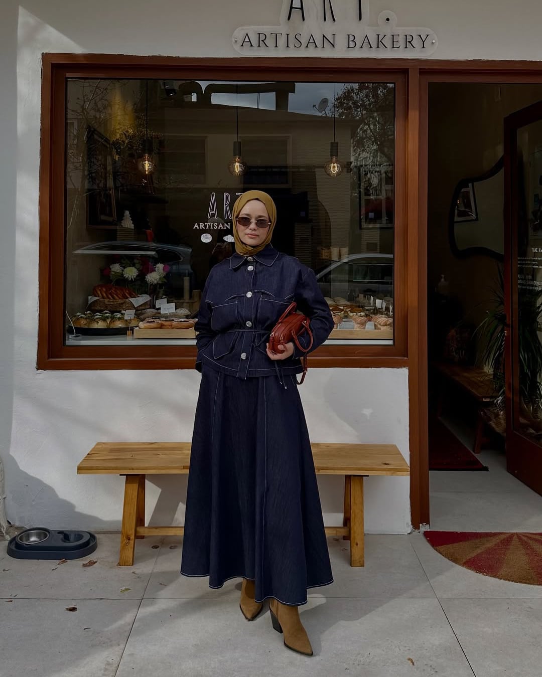 Liya Cep Detaylı Kot Etekli Takım - Lacivert