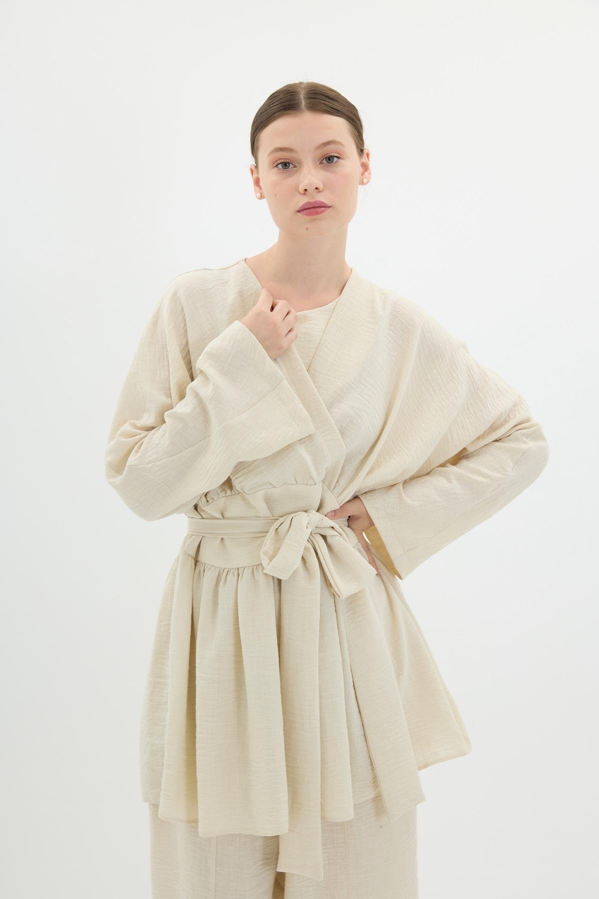 Aria Kuşaklı Keten Takım - Taş (7219-Taş)