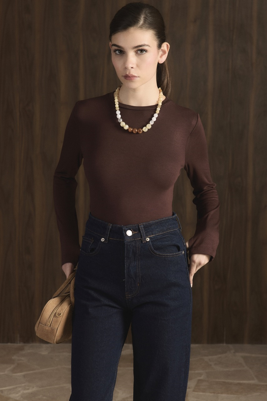 Balıkçı Yaka Basic Body - Kahve (26Y08-Kahve)