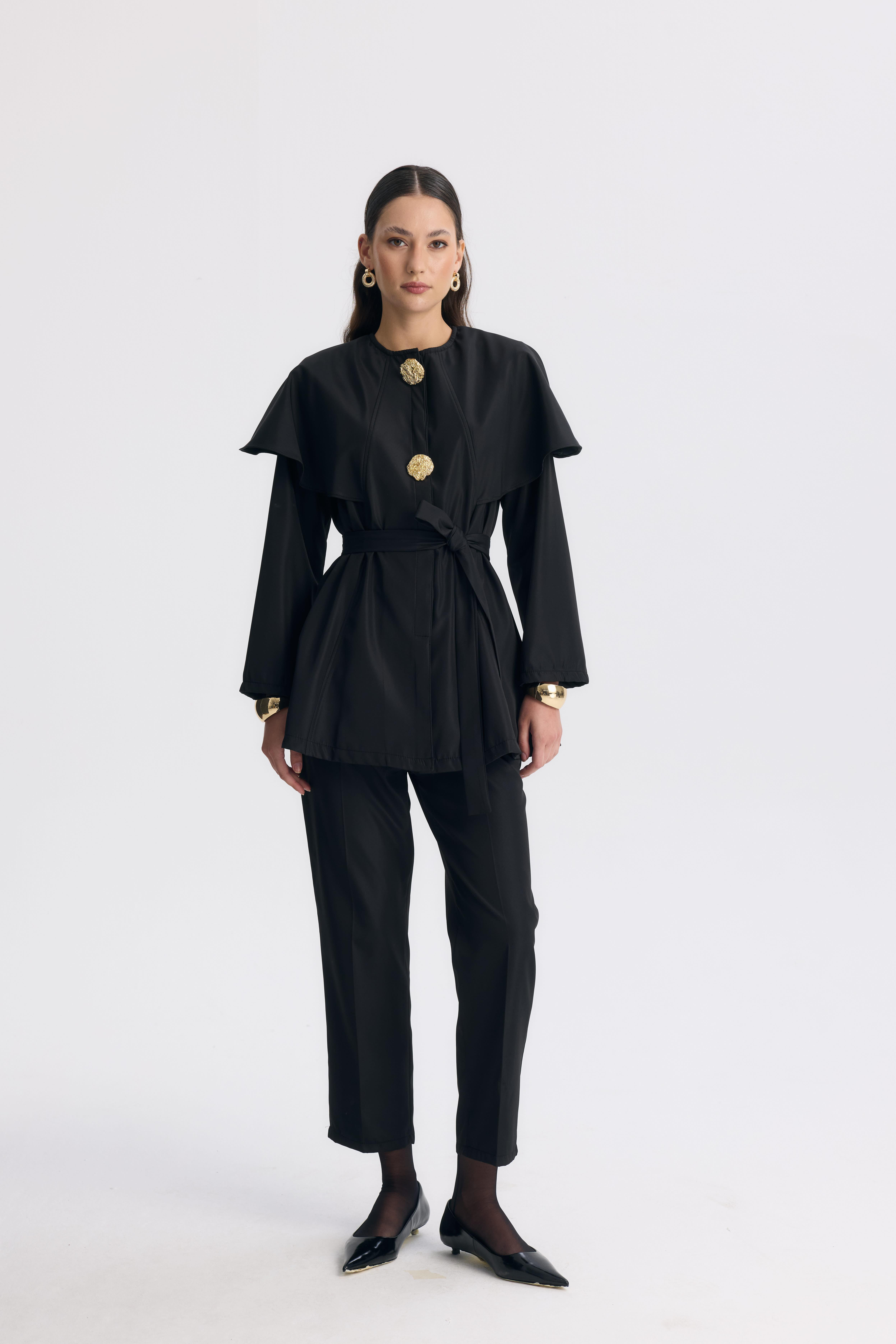 Chanelle Pelerin Kemerli Takım - Siyah (7229-Siyah)
