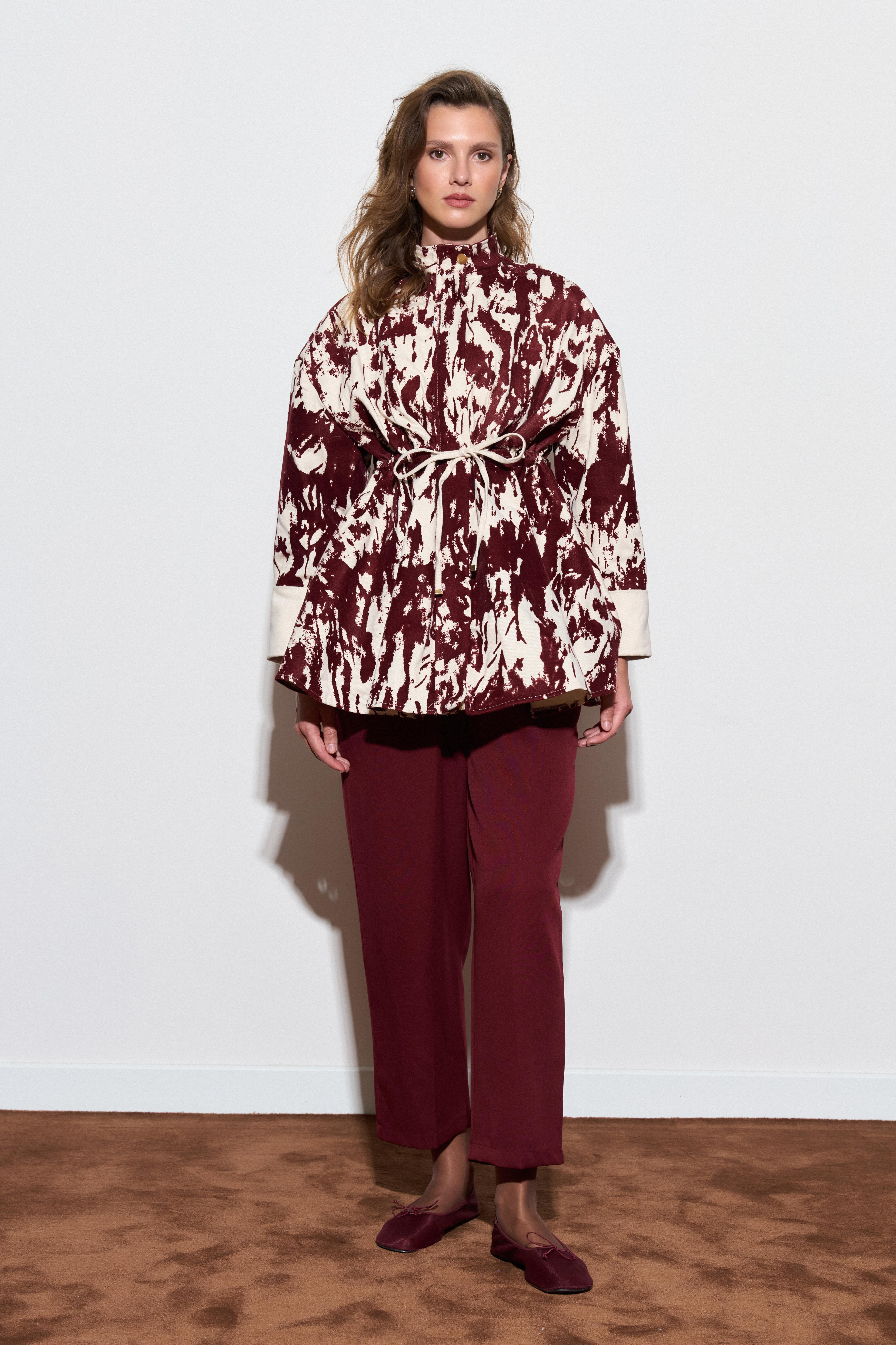 Fery Flok Baskılı Ceket - Bordo