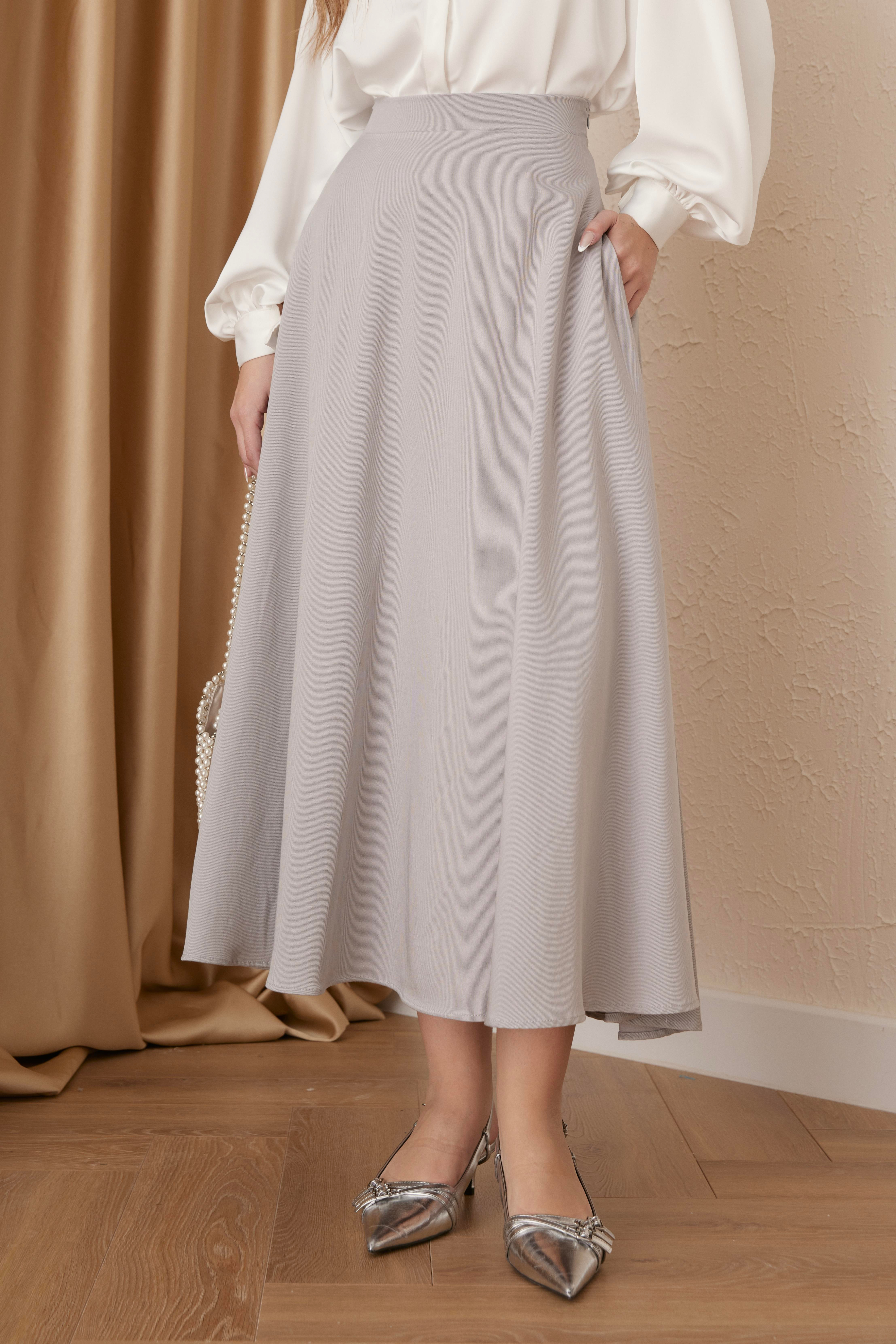 İnce Gabardin Kloş Etek - Gri (7103-Gri)