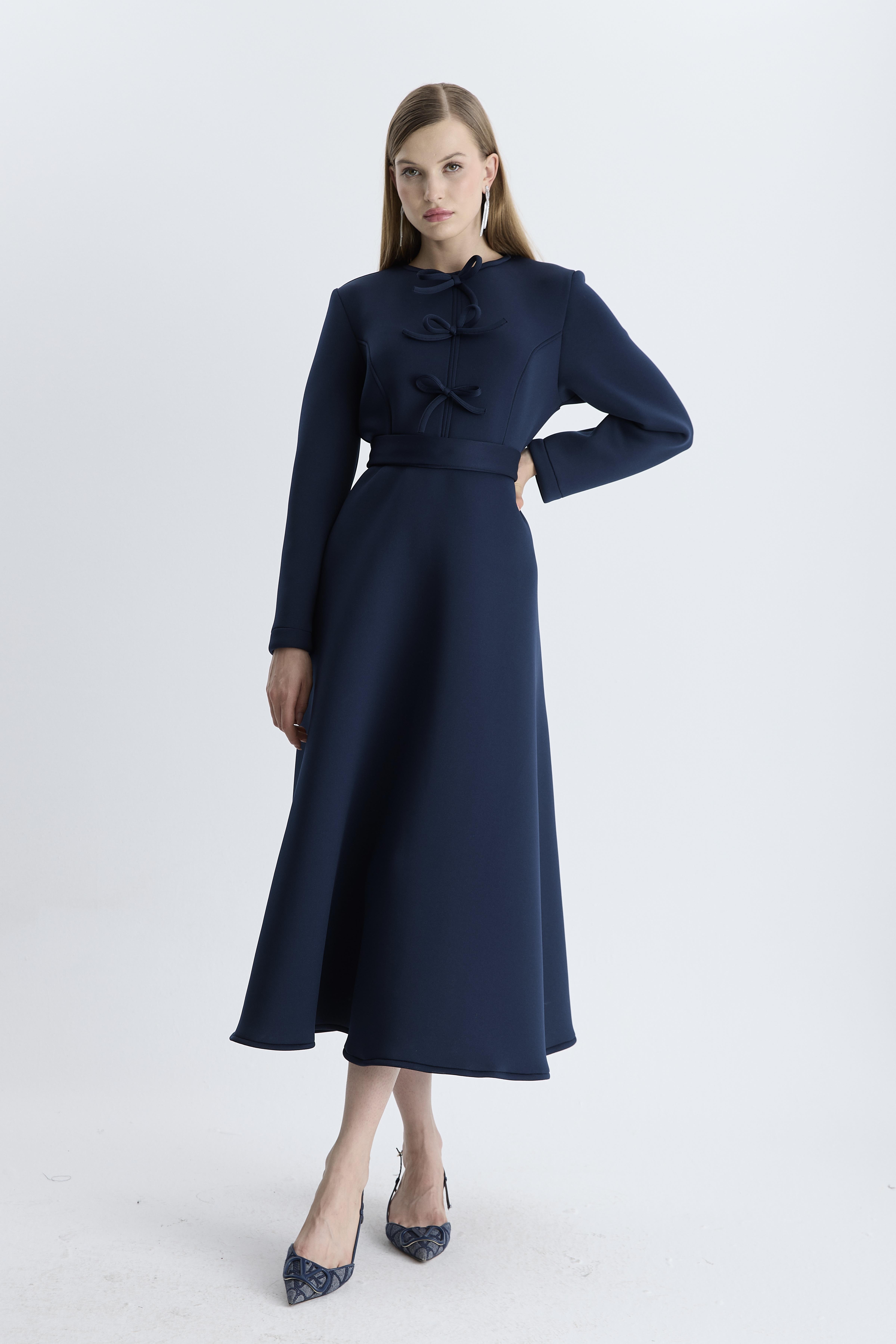Jammes Fiyonklu Scuba Elbise - Lacivert