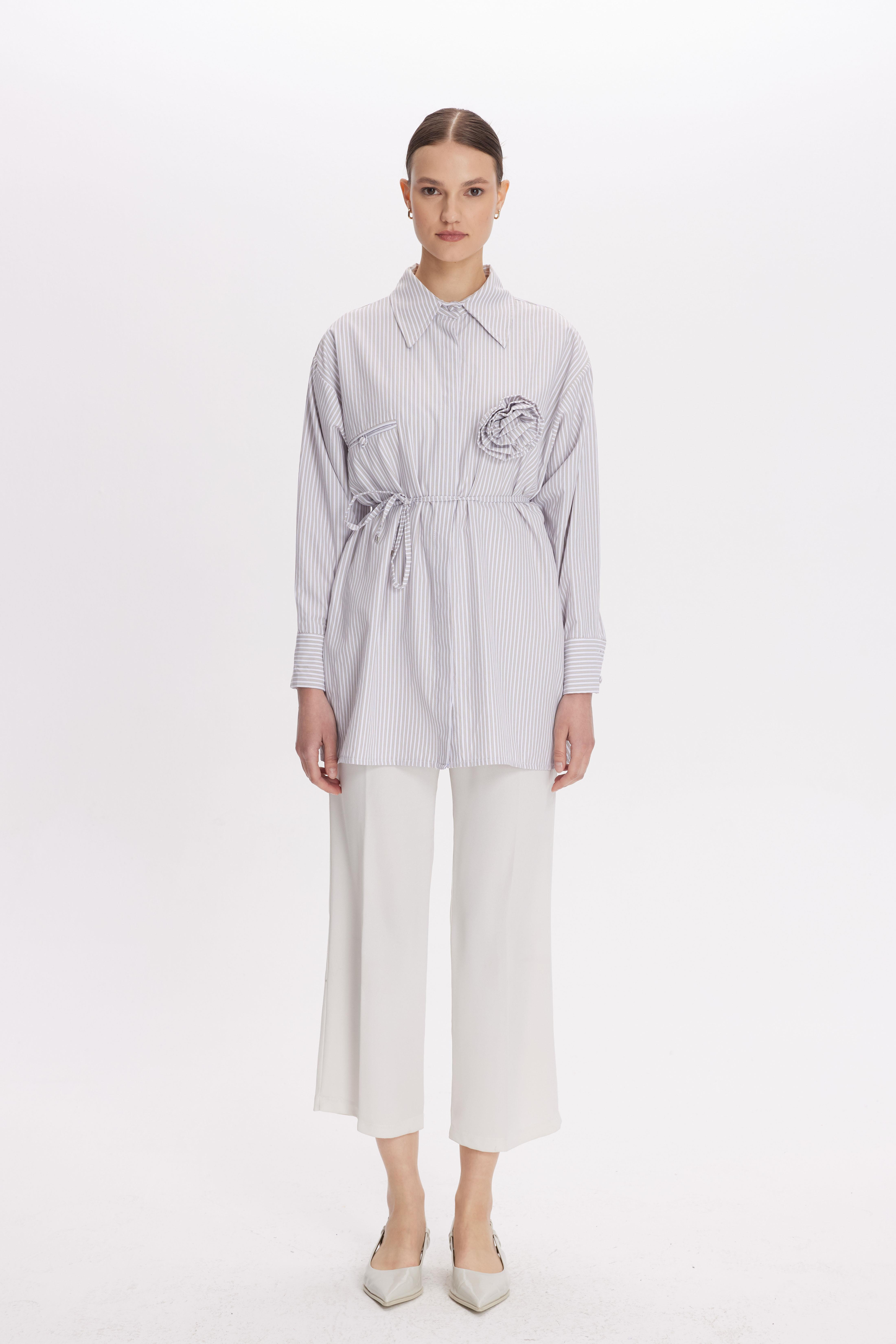 Nicole Aksesuarlı Çizgili Gömlek - Bej