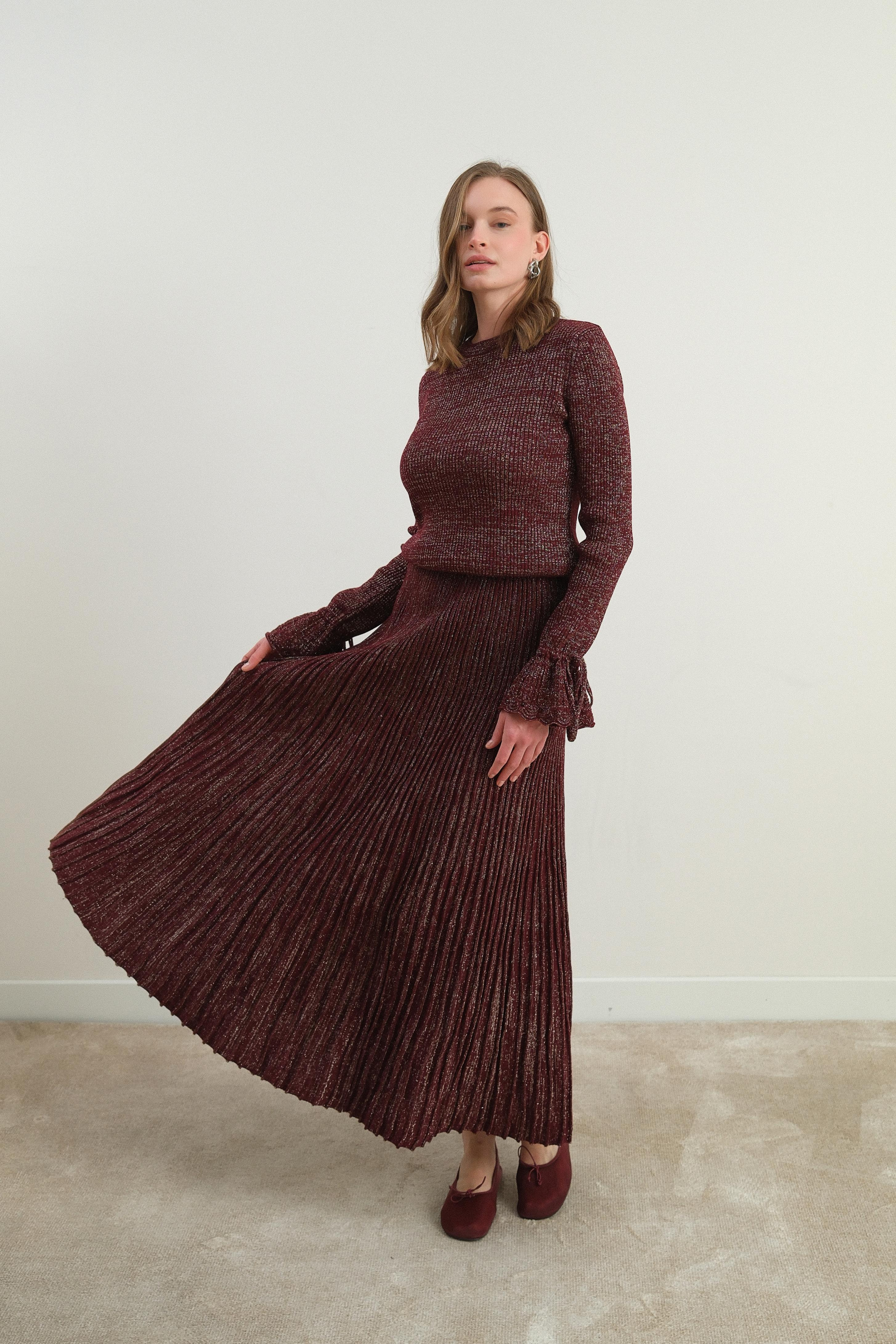 Simli Triko Elbise - Bordo (AHL714-Bordo)