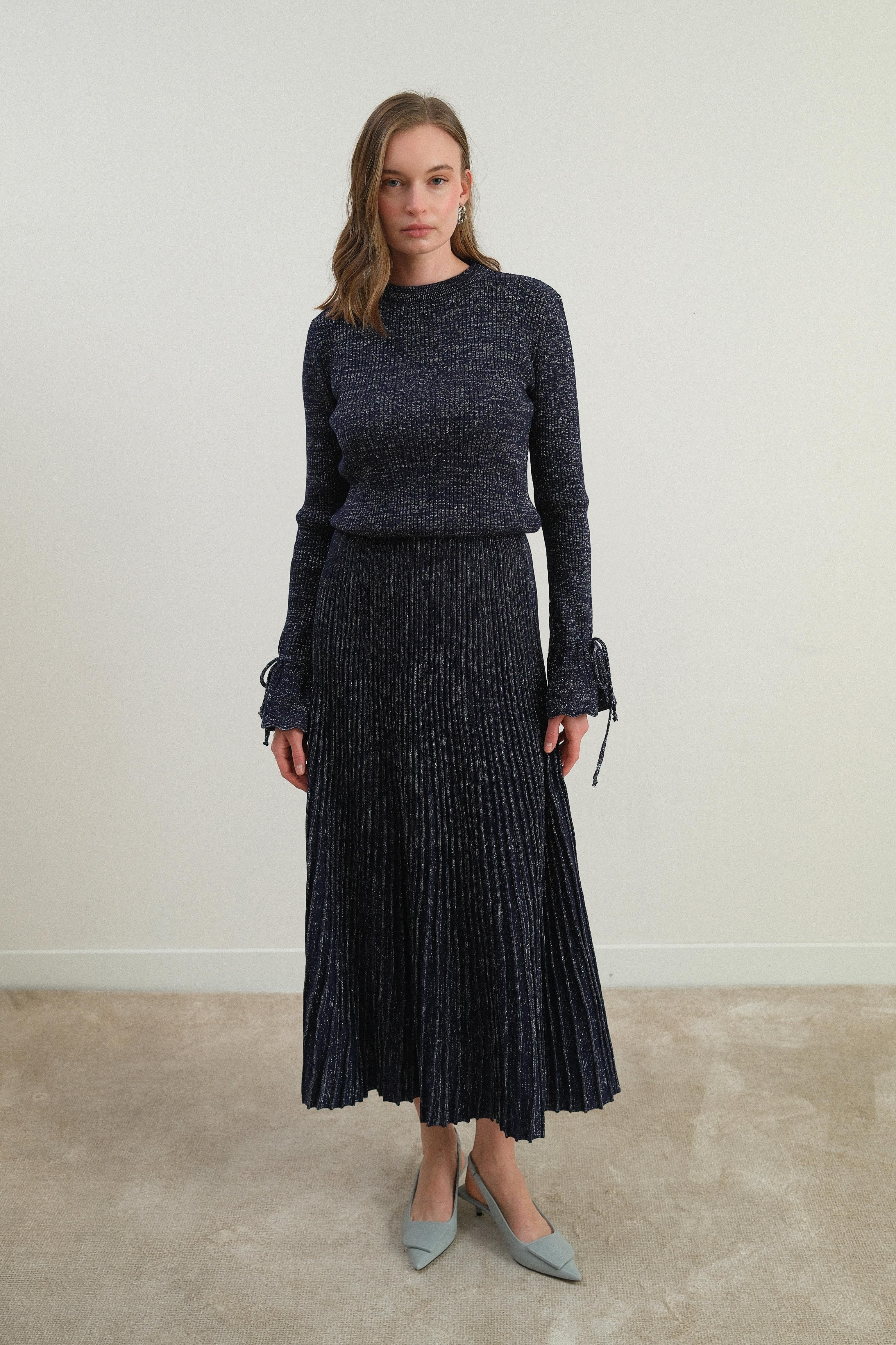 Simli Triko Elbise - Lacivert (AHL714-Lacivert)