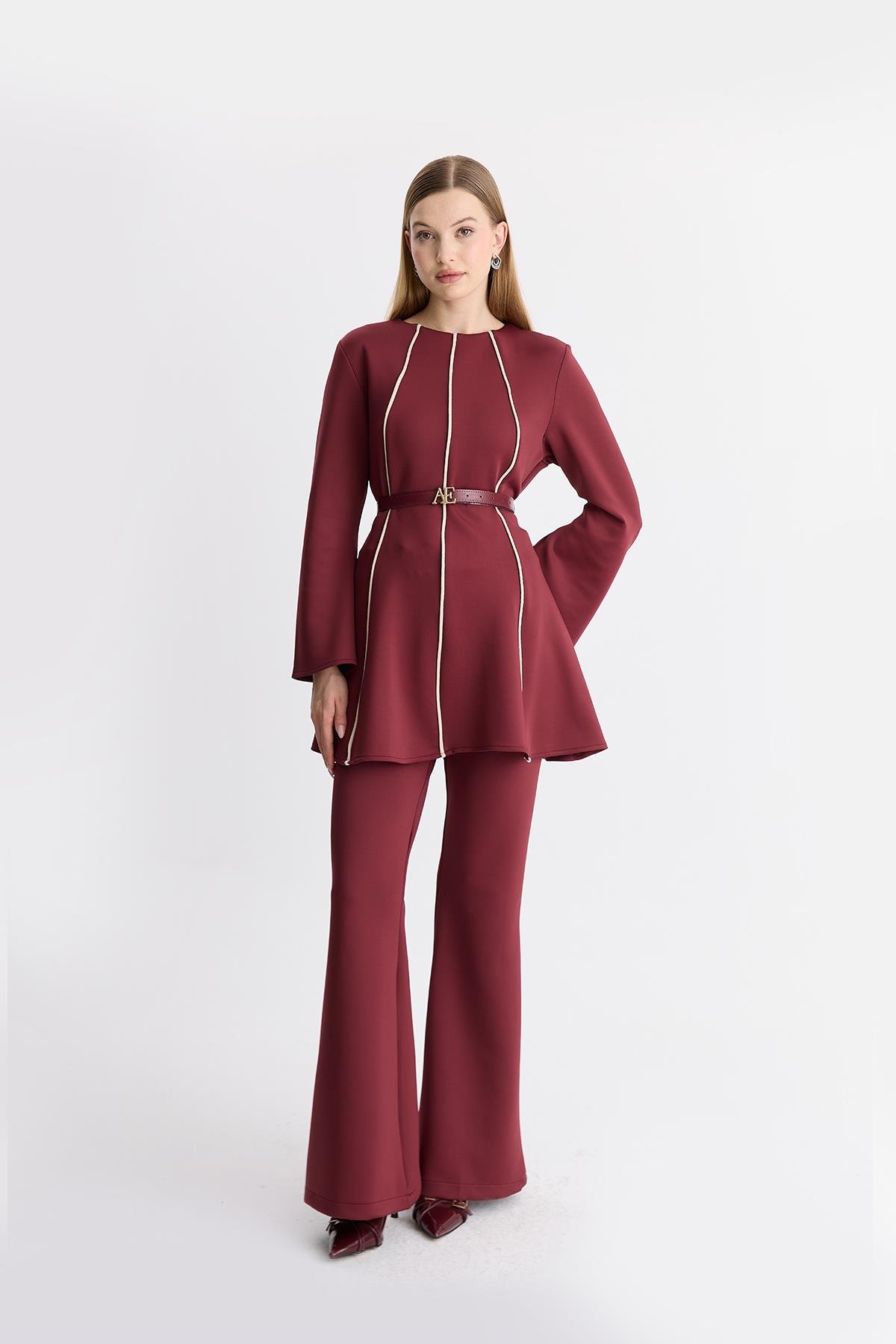Braylon Şeritli Scuba Takım - Bordo