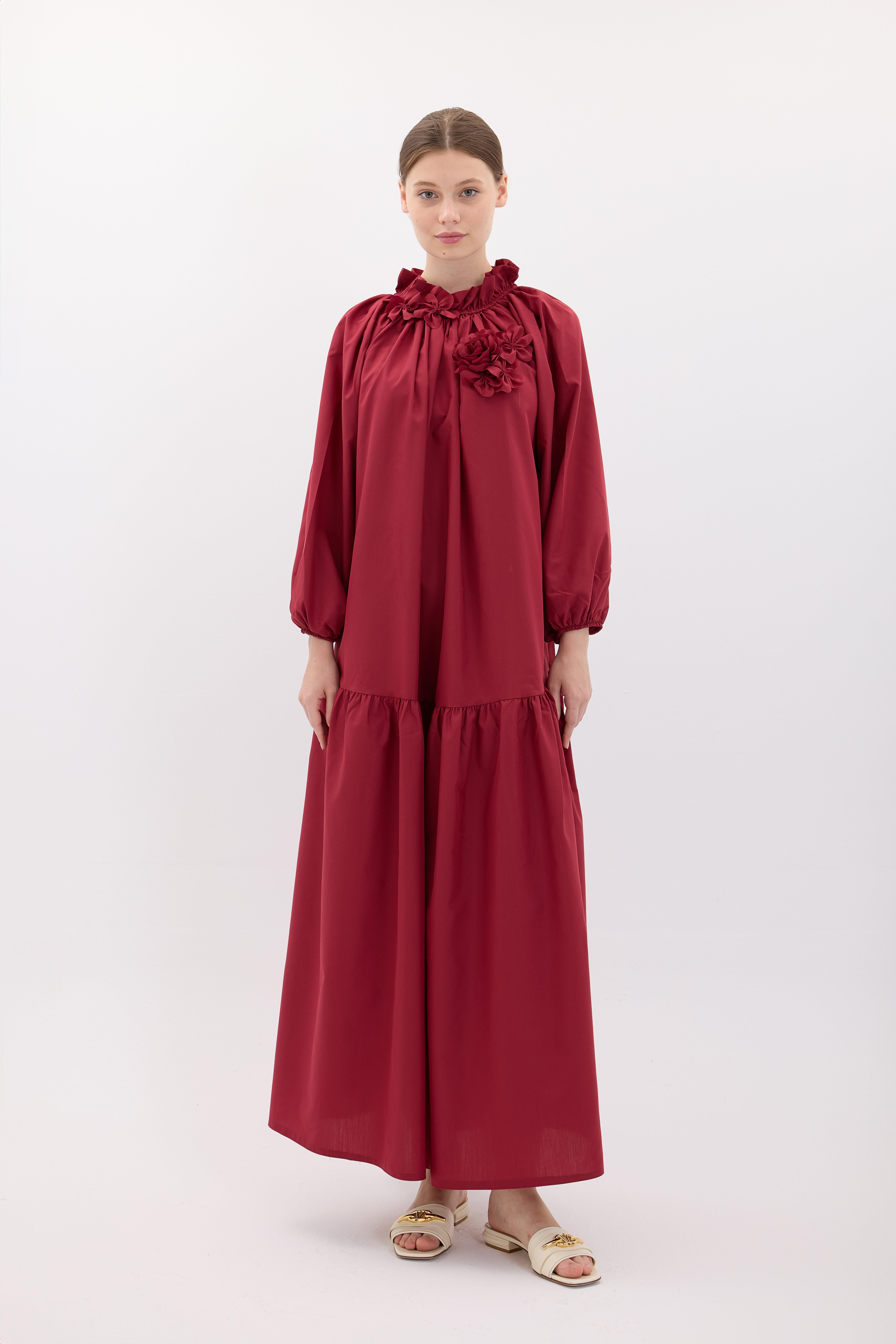 Butterfly Aksesuarlı Elbise - Bordo (zyk4552-Bordo)
