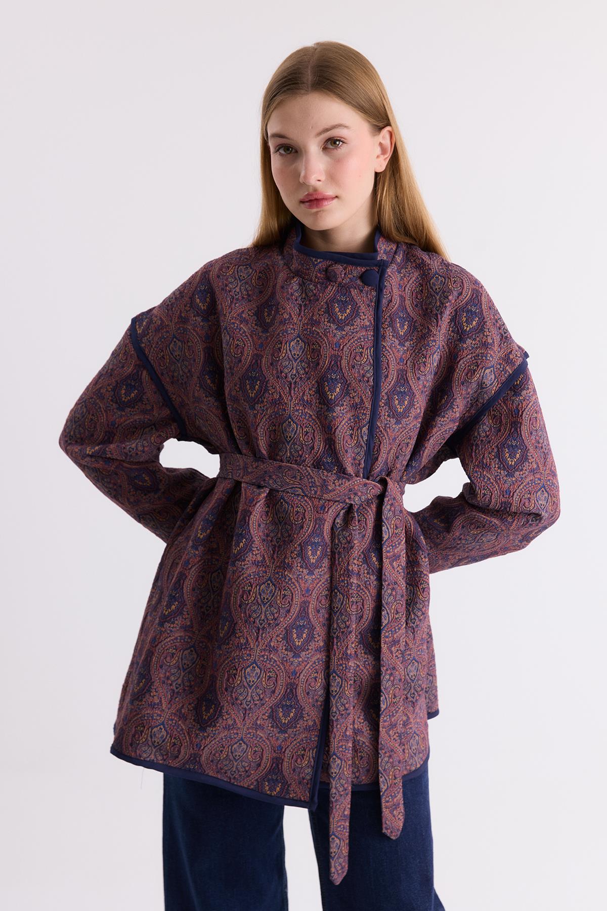 Esperanza Etnik Desen Dik Yaka Ceket - Lacivert