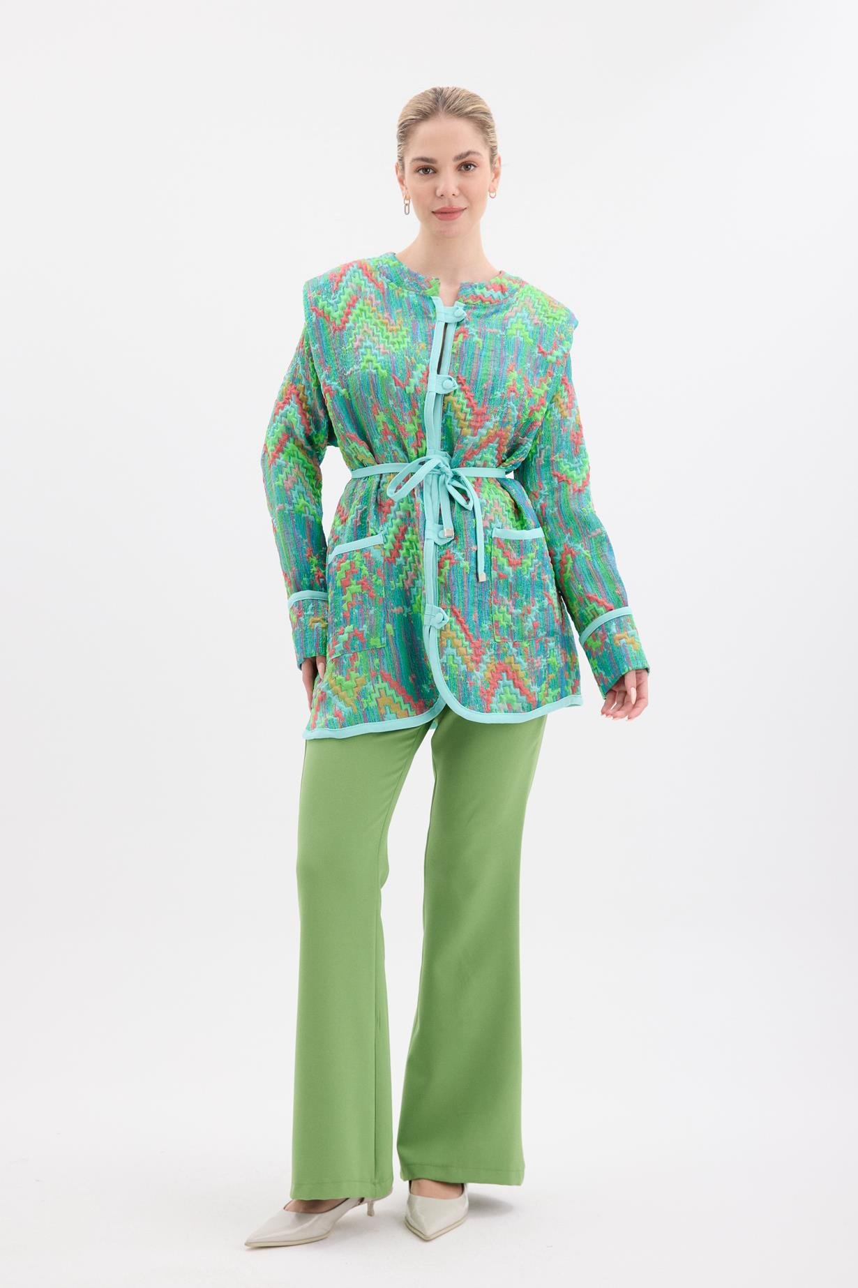 Etnik Desen Jakar Ceket - Mint (6174-Mint)