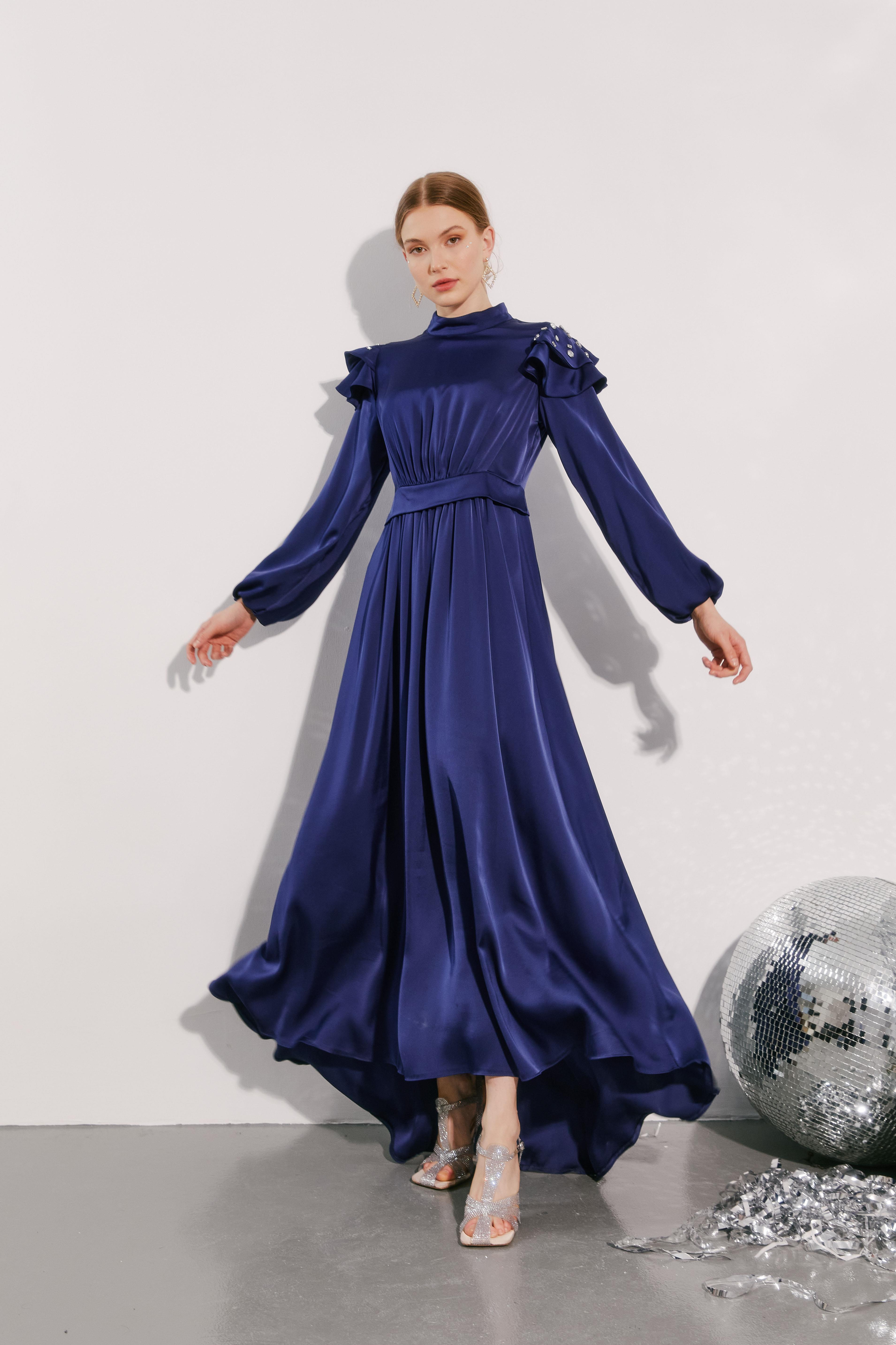 Fiona Omzu Taşlı Abiye Elbise - Gece Mavisi
