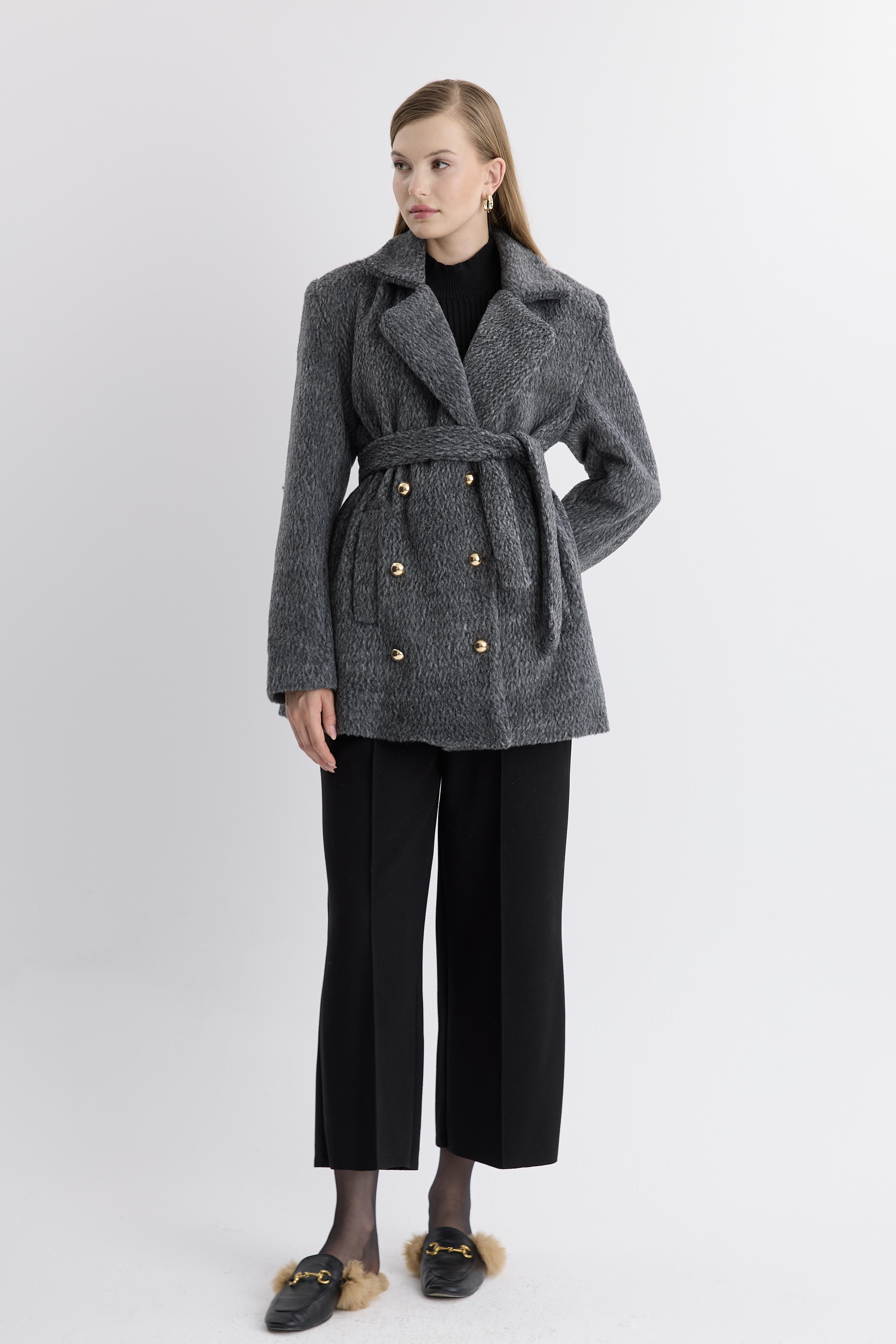 Blazer Düğmeli Kaşe Ceket - Siyah (6420-Siyah)