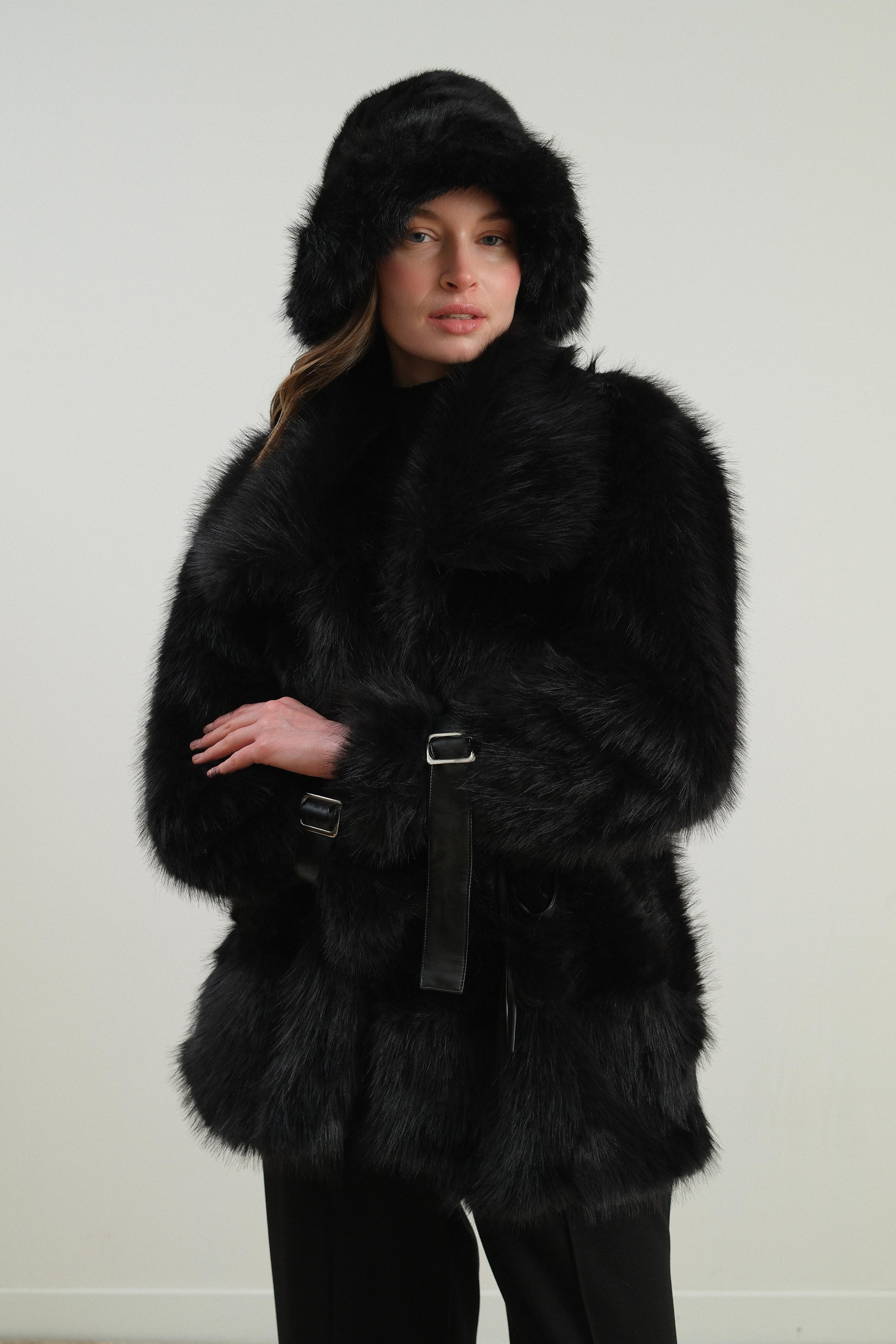 Sandyna Kol Kemerli Premium Kürk - Siyah