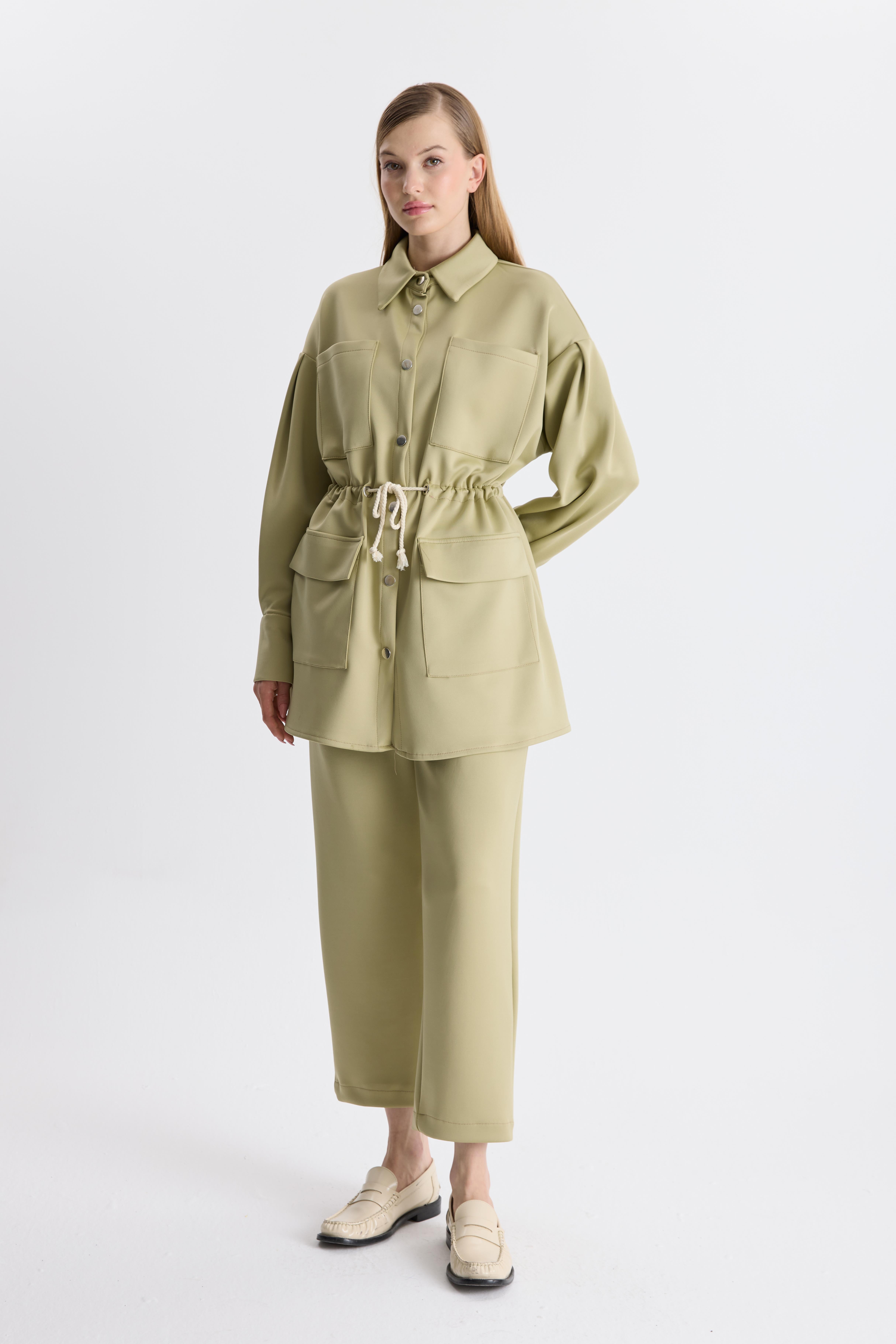 Semy Belden Bağlamalı Cep Detay Takım - Fıstık Yeşili (7218-Fıstık Yeş)